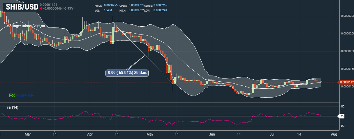 But since the candlesticks are on the verge of slipping below the basis of the indicator, any price swing that does take place will cause a price fall for SHIB.