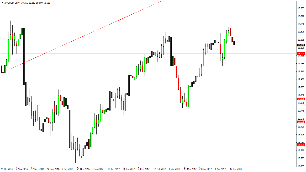 Silver markets fell a bit during the day on Wednesday, testing the $18 level for support. This is an area that has a certain amount of psychological