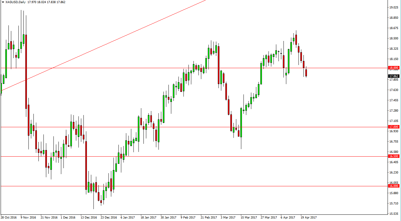 Silver markets fell on Friday but continue to find support near the $17.80 level. If we can break above the top of the candle, which is extensively