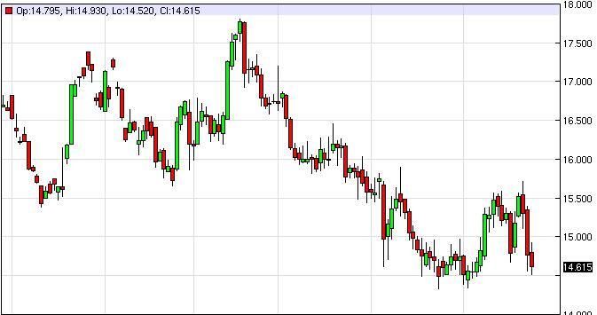 Silver markets fell slightly during the session here on Tuesday, but the $14.50 level below is still supportive. Because of this, we are not ready to start selling until we significantly clear that level, so we will have to be patient. On the other hand, we could get a little bit of a bounce from here and see resistance as well. The resistance above would be a reason enough to start selling also. We have no interest in buying this market, the silver market looks far too bearish at this point in time to even entertain that type of thought.