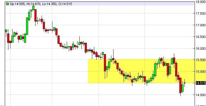 The silver markets as you can see went back and forth during the course of the day on Friday, testing the $14.50 level for resistance. Because of this, we ended up forming a fairly neutral candle, and as a result if we break down below the bottom of the range for the Friday session, we would be sellers as the market should head back down to the $14.00 handle next. If we break the top of the range for the Friday session, we feel that the next massive resistance barrier is closer to the $15.00 level.