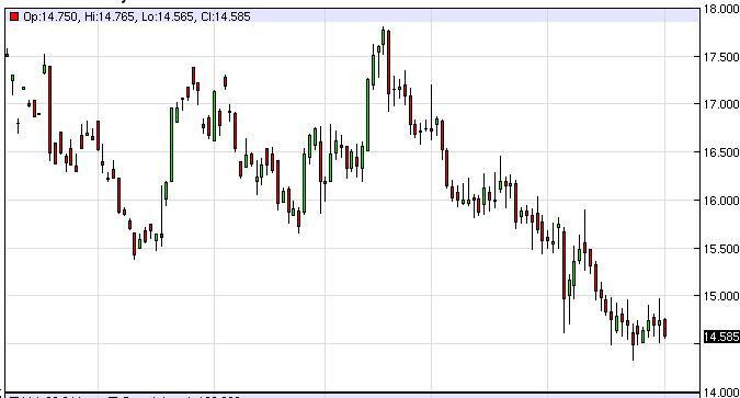 Silver markets continue to bounce around, as the $14.50 level below is supportive, and the $15.00 level above is resistance. With this being the case, the market looks like it is ready to consolidate overall, but at this point in time it is going to be difficult to trade this market unless of course you can stick to short-term charts. Ultimately, we believe that there is probably a bit more down pressure in this market than up, so having said that we are more comfortable selling short-term rallies than anything else. With this, we are bearish but not overly enthused.