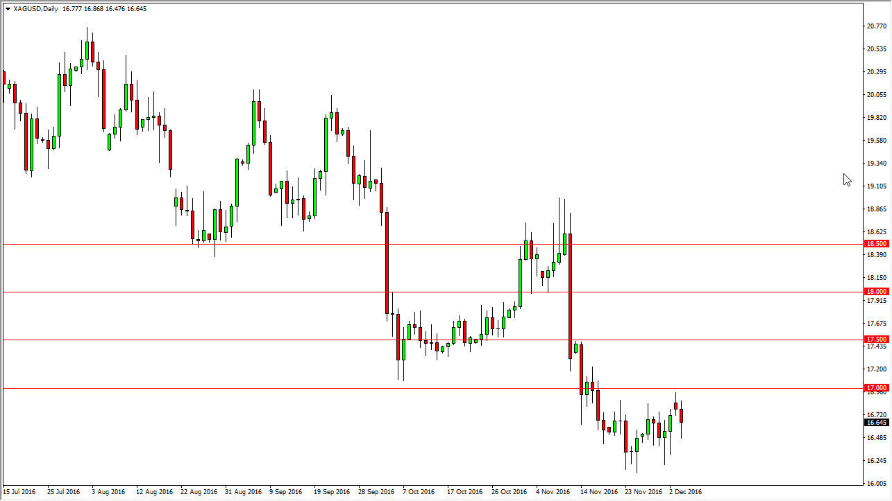 Silver markets rallied at first, and then fell on Monday. Ultimately though, we turned around to form a hammer, which suggests that the $17 level will be