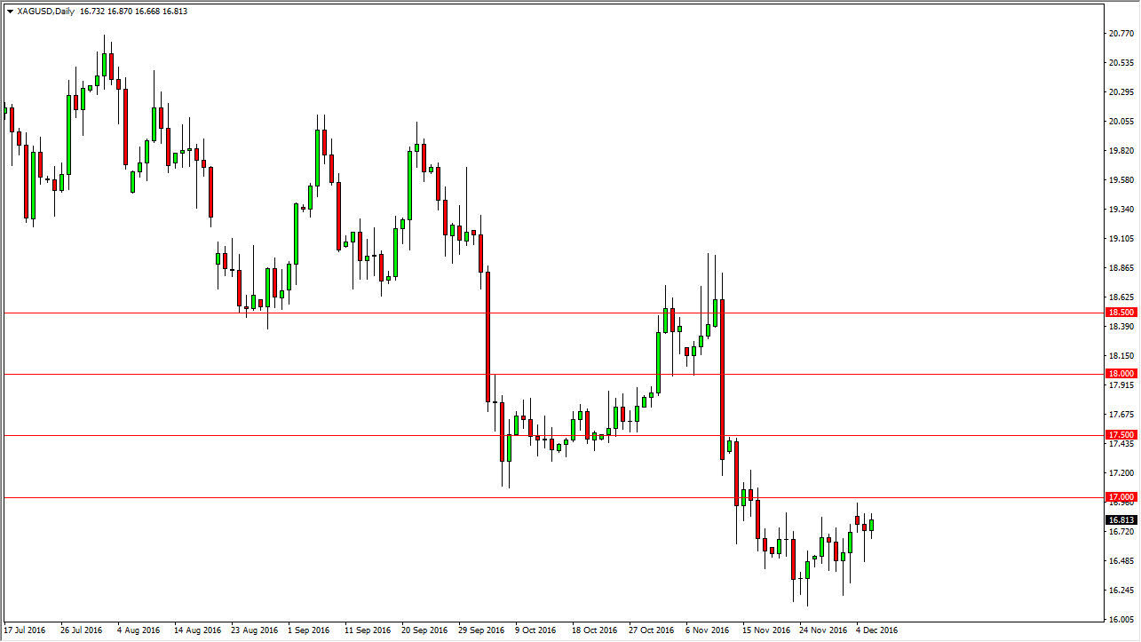 Silver markets did very little on Tuesday, as we continue to hang about just below the $17 level. This is an area that should be resistive, but even if we