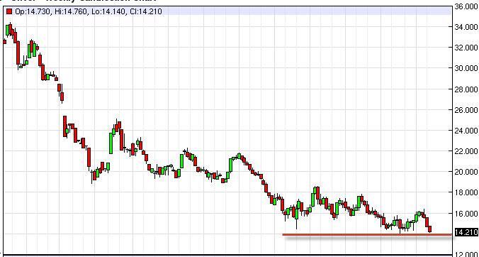 The FTSE fell during the course of the week, testing the $14.20 region. There is a significant amount of support just below the $14 handle though, so we