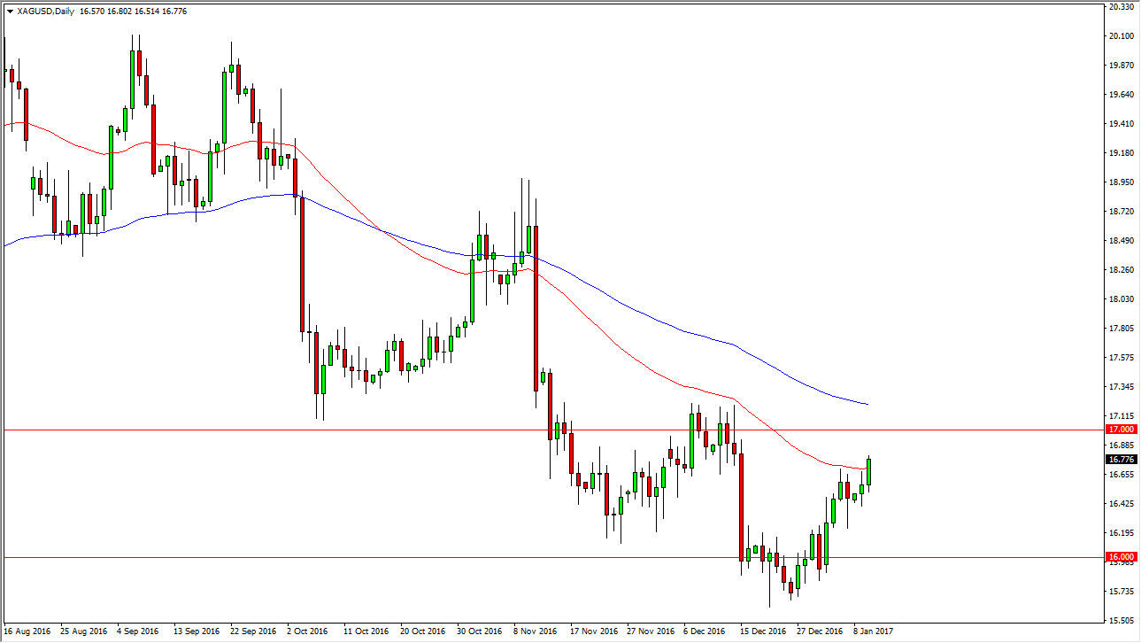 Silver markets rallied on Tuesday, as we approach the $17 level. This is an area where I would expect to see some exhaustion though, and of course the