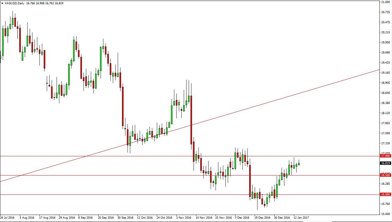 Silver markets rallied on Monday, but found the $17 level above to be resistive. Because of this, we turned around to form a small shooting star. I think