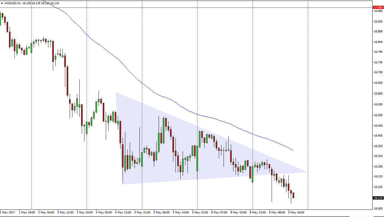 Silver markets fell again during the session on Tuesday, breaking down to fresh, new lows. The $16 level is just below, and that being an area where I would expect to see a certain amount of psychologically significant support. However, I believe that any rally from that area should offer a selling opportunity as the Silver markets are so obviously broken. I believe that the $16.20 level above is resistive, so any sign of and exhaustive candle should get sellers involved again. I believe that the Silver markets continue to fall overall, as the US dollar continues to show quite a bit of strength. Also, we have lost the “safety trade” for the time being, so I think that eventually the $16 level gets broken.