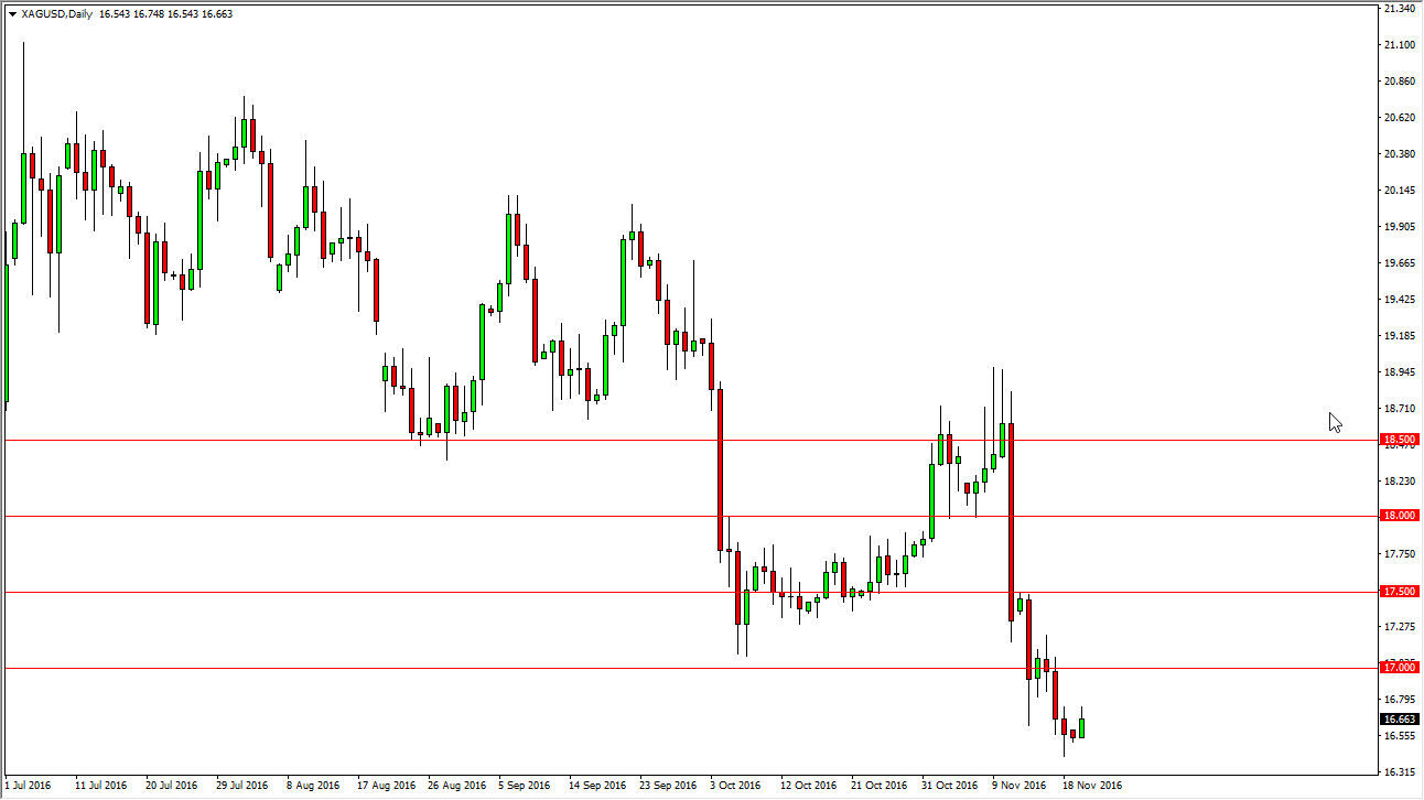 Silver markets rose slightly during the course of the day on Monday, and as we continue to see quite a bit of volatility. The $17 level above is massively resistive, and as a result I think it’s only a matter of time before the sellers get involved. At the first opportunity, I will start shorting exhaustion as this market continues to show that the US dollar has been working against the value of precious metals in general. I have no understand buying, at least not at the moment. It is not until I see a long-term candle that I can get involved to the upside.