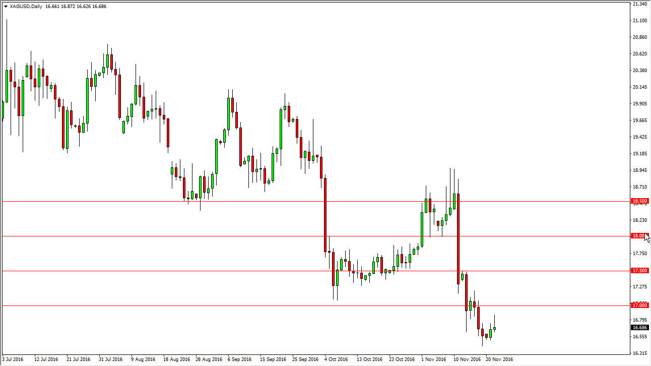 The silver market initially rallied on Tuesday, but turned around to form a shooting star. Ultimately, I think that every time this market rallies, you have to think that it’s only a matter of time before sellers come back in. With this, I feel that the market will probably reach down towards the $16 level. If we can break above the $17 level, that could be bullish but at this point I don’t see it happening. Silver markets continue to suffer at the hands of the strengthening US dollar, and probably will continue to be that way for some time.