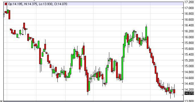 Silver markets went back and forth during the course of the session on Friday as we had quite a bit of volatility. Part of this might’ve been due to the fact that there was little in the way of volume when it came to North America, as most Americans were still celebrating Thanksgiving. Ultimately though, it looks as if the selling pressure continues to strengthen, and that we should eventually break down below the $14 level. Once we break down below there, the market should then reach towards the $12 level. We have no interest whatsoever in buying, and believe that even if we rally from here it should be a nice selling opportunity.