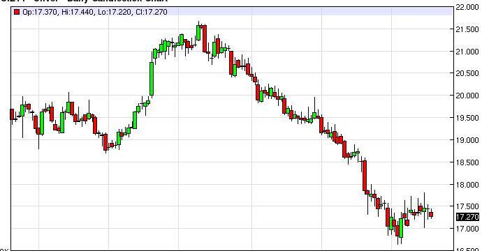 The silver markets fell slightly during the session on Friday, but we still remain well within the consolidation area that we have been in for some time, and as a result we don’t really have too much interest in been involved in this market, but do recognize that there is more of a downward bias. We believe that the market continues to drop down to the $15 level, which of course is a large, round, psychologically significant number. With that, we are bearish but quite frankly don’t feel the need to risk any significant amount of money in this market.