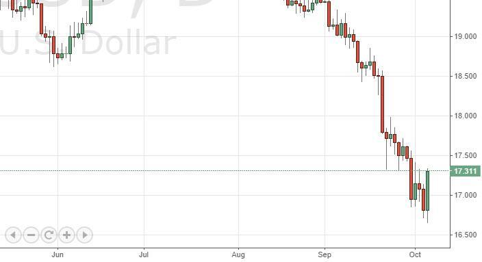 The silver markets bounced during the session on Monday, going all the way up to the $17.30 region. However, this is most certainly one of the more bearish markets out there, and as a result it’s very likely that the markets will continue to sell off over the longer term. With that, we believe that $18.00 will be the “ceiling”, and with that the market should continue to be very negative. The bullish candle does look significantly strong, but only for the short-term. We are simply waiting for that resistant candle in order to start going short yet again.