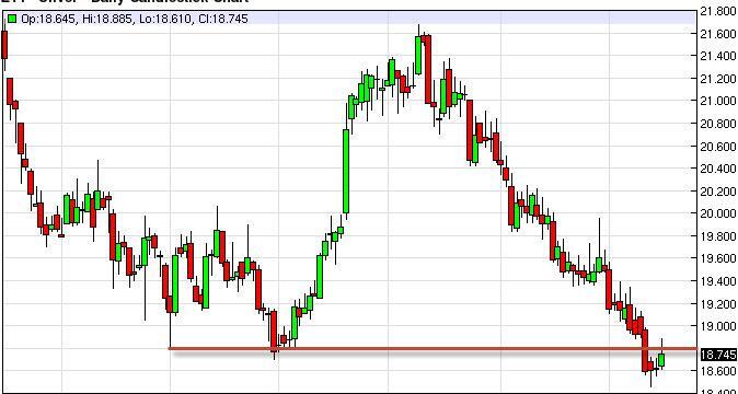 The silver markets as you can see initially broke higher during the course of the day on Tuesday, but found enough resistance and the $18.75 region to turn things back around and form a shooting star. The shooting star of course is a very negative sign and as a result we feel that this market will continue to drift lower, possibly breaking down. At the very least, we are going to grind around between the current area, and bullish momentum seems very unlikely at this point in time. If we break down below the bottom of the hammer from a couple of sessions ago, we feel this market would then drift down to the $15 level, and then possibly as low as the $13 level. Silver markets look very weak at this point in time, and as a result we think that the sellers will continue to step into this marketplace.