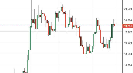 The silver markets fell slightly during the day on Friday, but essentially are just grinding away sideways. The candle suggests that we are simply going to grind sideways overall, and that we are trying to break out but we may need to pull back a little bit in order to build up enough momentum to finally clear the $20 level. Once we do, the market should continue to go much higher, perhaps reaching towards the $20.50 level, and then breaking out above there given enough time. I have no interest in selling, I believe there is more than enough support below to continue to keep this market afloat.