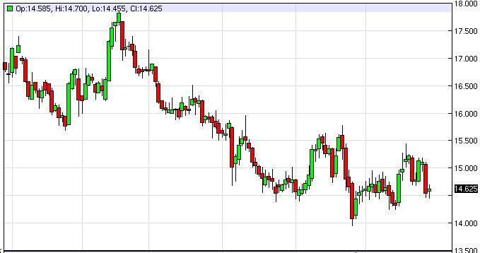The silver markets went back and forth during the course of the day on Tuesday, finding the $14.50 level to be supportive enough to keep the market somewhat afloat. If we can break above the top of the candle for the session on Tuesday though, we feel at that point in time that the market should reach towards the $15.00 level. We believe that the market should continue to show signs of resiliency given enough time, but having said that we recognize that short-term charts will be used to trade this market. After all, we are playing around in a fairly tight range.