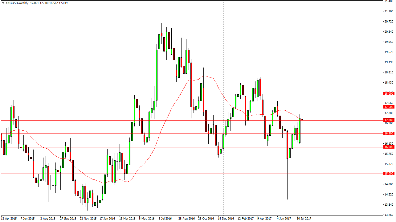 Silver markets initially fell during the week but found enough bullish pressure by the end of it to form a hammer near the $17 level. If we can break