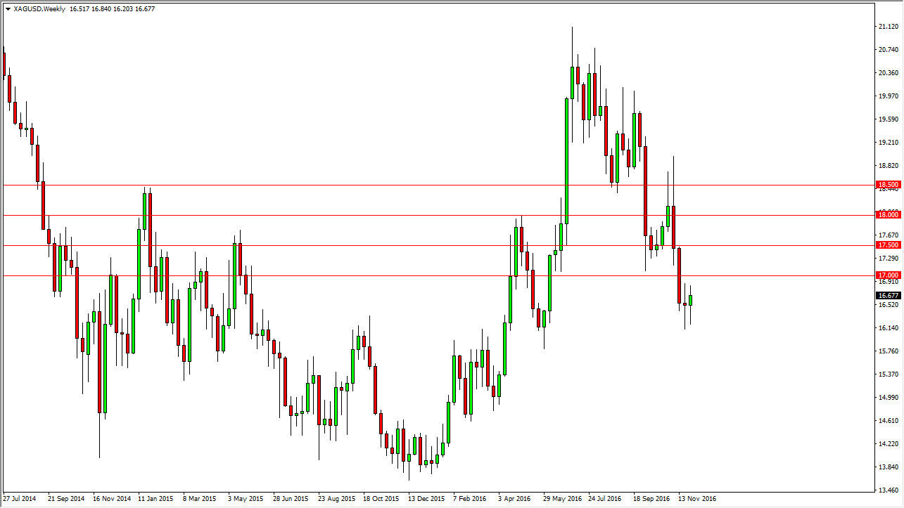 Silver markets fell initially during the week, but turned around to form a hammer. Ultimately, this is a market that looks like it could bounce but I