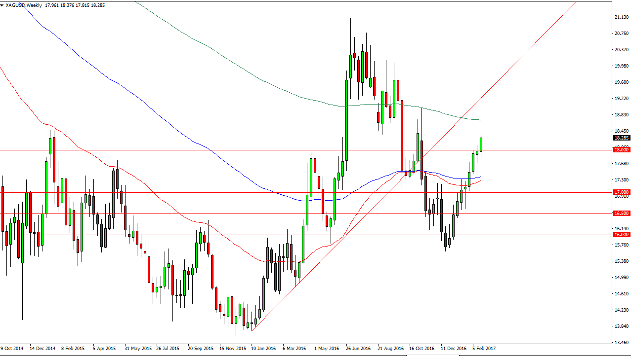 Silver markets initially fell during the week but broke well above the $18 level, and as a result looks like we are to continue to see quite a bit of