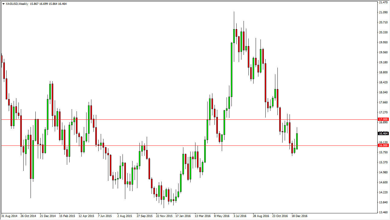 Silver markets rallied during the week, breaking well above the $16 level. However, I see quite a bit of resistance all the way to the $17 level above. On