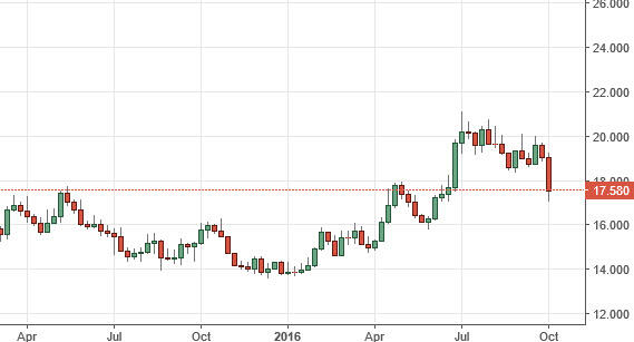 Silver forecast for the week of October 10, 2016, Technical Analysis
