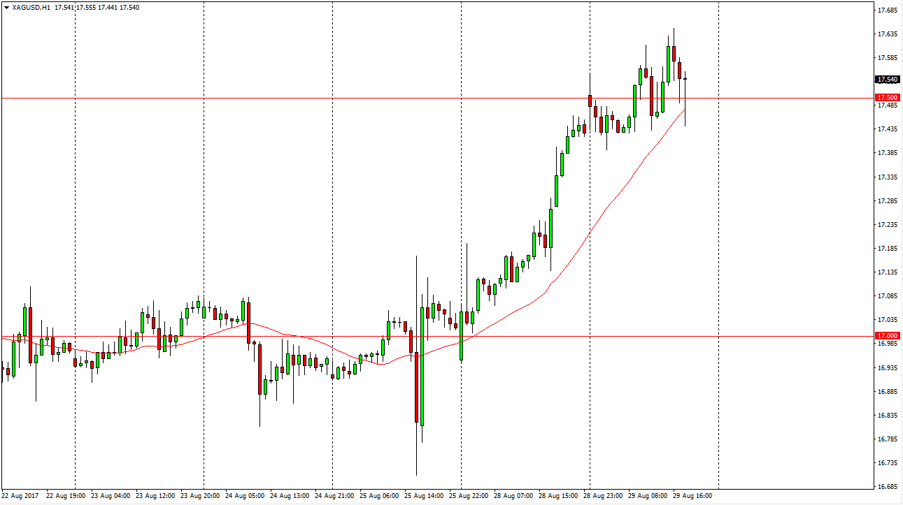 Silver markets went sideways initially during the day on Tuesday, but then broke higher. We have been very volatile, but it seems as if there is a certain amount of interest near the $17.40 level, and we should continue to see a “buy on the dips” mentality from short-term traders. I don’t have any interest in shorting Silver, least not until geopolitical concerns go away, which seems to be very unlikely to happen anytime soon. With this being the case, I think that this market should remain bullish over the next several sessions. I currently believe that the market will go looking towards the $17.75, and then eventually the $18 level.
