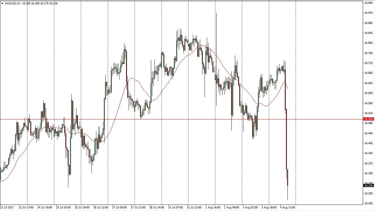 Silver markets initially went sideways during the day on Friday, but then collapsed as the jobs number came out much stronger than anticipated in the United States. This put the US dollar higher, and that put a lot of pressure on Silver markets. By slicing through the $16.50 level the way we did, I believe that there is significant bearish pressure and that rallies at this point will be sold. If we do rally to the $16.50 level, I think it would be a nice selling opportunity. It’s not until we break above the $16.75 level that I would consider buying, because it would wipe out the selling pressure and show such a resiliency that I think most of the trading world would stand up and take notice.