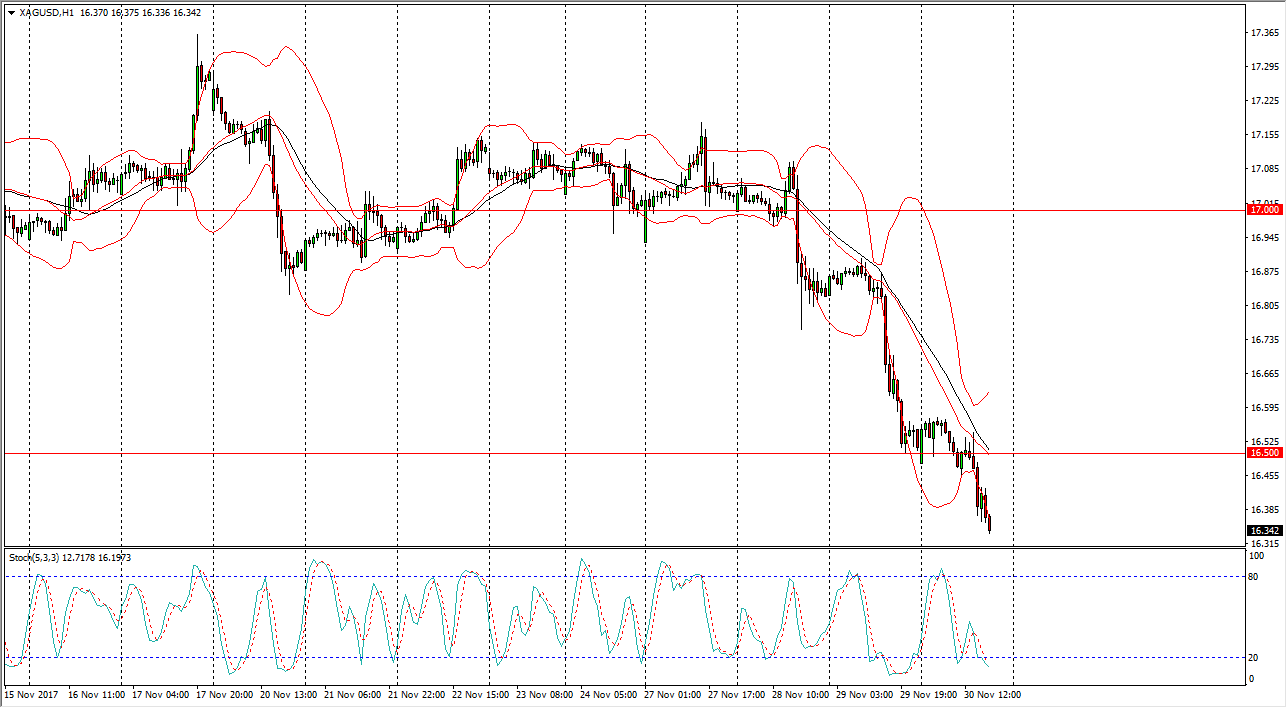 Silver markets went sideways initially during the day on Thursday, sitting on top of the $16.50 level and showing signs of support. However, we broke down significantly, and it looks like we are ready to go down to the next major support level, which I see as the $16 level. The $16.25 level is of course can be supportive as well, as it is a minor sort level, but given enough time I think that we will certainly sliced through it. Any rally at this point should be a nice selling opportunity on signs of exhaustion, especially if we fail at the $16.50 level above, which is likely to be resistance going forward. Also, you should keep an eye on the US dollar, because if it rallies it will more than likely be a drag on silver and precious metals in general.