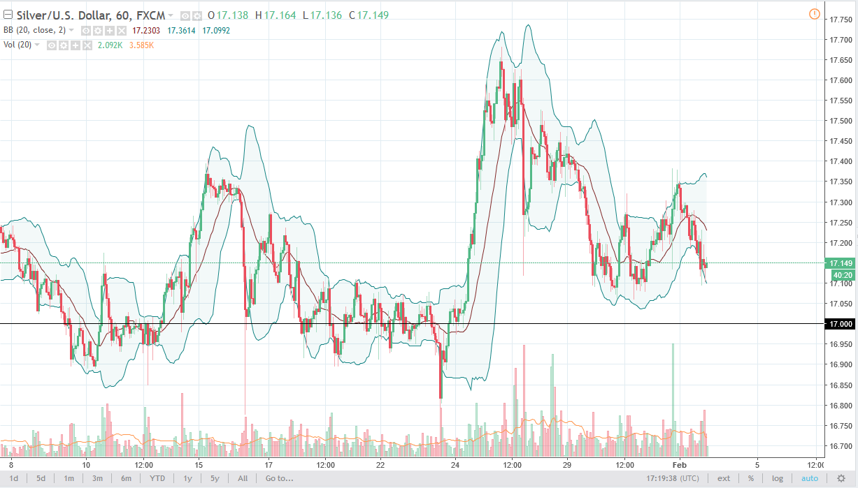 Silver markets have sold off significantly during the trading session on Thursday, but there is plenty of support underneath, especially near the $17 level. The level has offered a lot of volume and interest, and I think that today’s job number will have a massive influence on where the US dollar goes, and of course I suspect that it will have a massive influence on where Silver goes. I believe that the jobs number will cause a massive amount of volatility, but at the end of the day I would anticipate that the market will probably try to go higher over the longer term. I think that eventually we will go looking towards the $18 level, but I also recognize that the other side of the trade is reaching down to the $16.80 level. If we break down below that level, then the market could fall apart but at this point it looks to me as if precious metals are starting to pick up a lot of interest. I believe that longer-term traders are starting to go higher, but Silver course is very volatile.