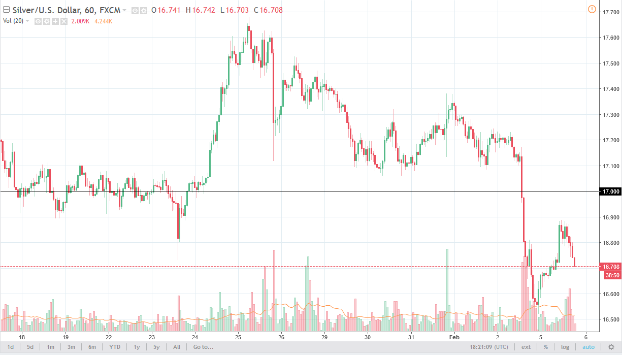 Silver markets continue to be very difficult to deal with, as we had initially rally during the trading session on Monday, reaching as high as the $16.90 handle. We rolled over from there, showing signs of weakness again as the Americans sold off the stock markets, crypto currencies got absolutely crushed, and of course the bond markets were out of kilter. This is a market that is selling off in fear more than anything else, and I think we are going to go down to the $16.50 level next. That’s an area that should be supportive, and if we were to break down below there, the market probably goes looking towards the $16 level after that.