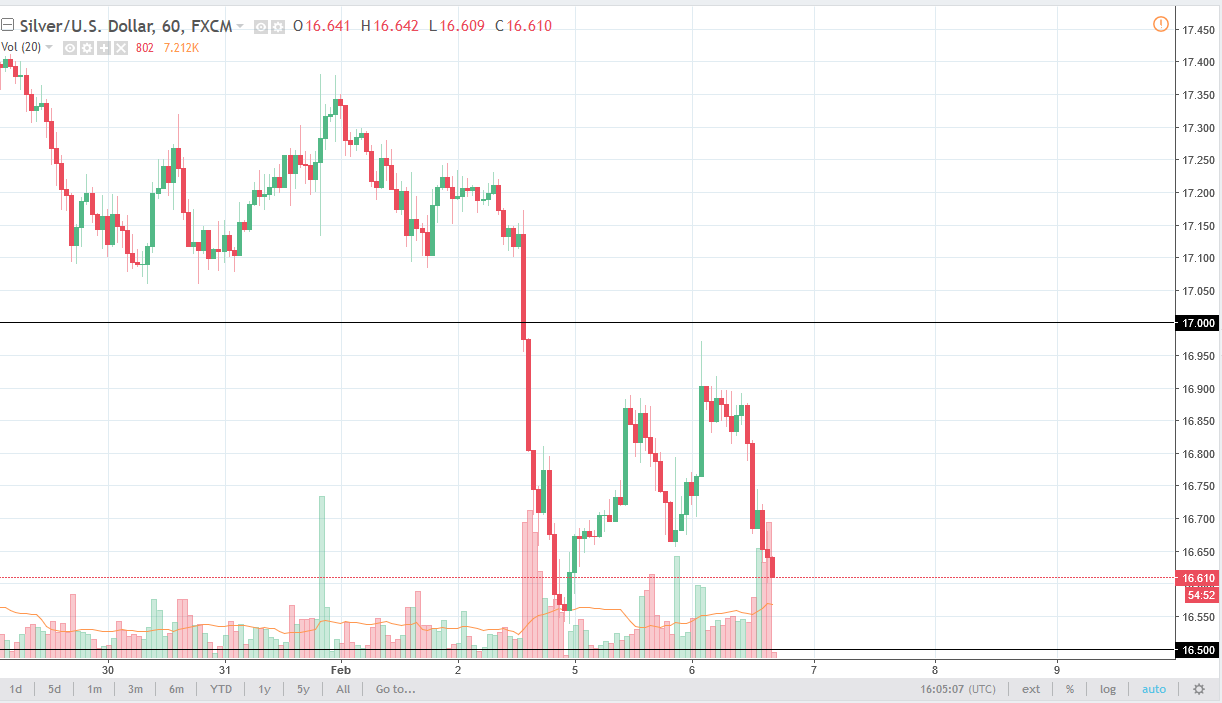 If we were to break down below the $16.50 level, the market then goes looking towards the $16 level after that. That’s a level that will attract a lot of attention as well, and I believe that if you can keep leverage out of the equation, you should be able to benefit from these dips longer term. I personally own physical silver, and avoid futures markets, which of course are highly levered. We do not have the clarity nor the stability and risk appetite to drive the value of silver higher over the short term. The US dollar of course will have a lot of influence on this market, and I think that eventually we should see the overall trend continue, but right now it’s obviously a significant sell off in the process.