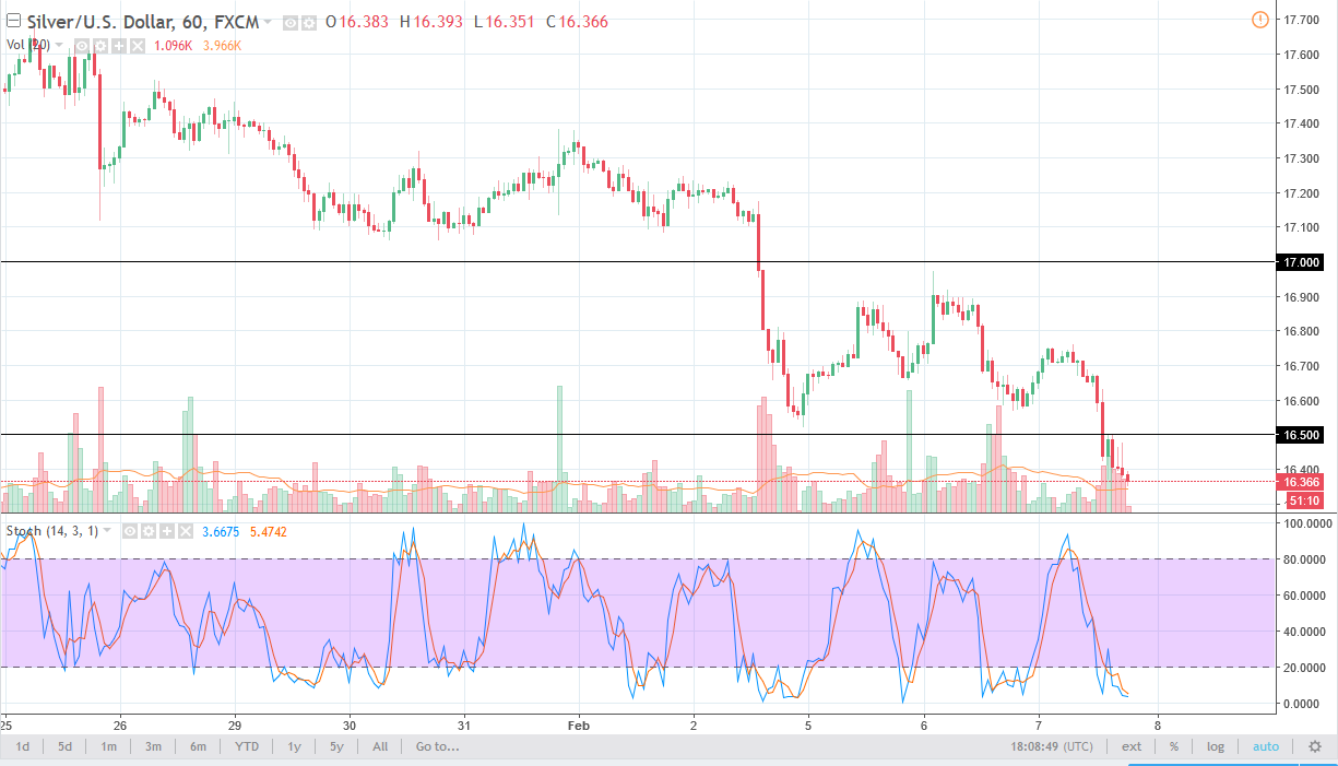 The alternate scenario of course is that things turn around and Silver markets climb above the $16.50 level, which would of course be very positive. I think that the market continues to be very volatile, but that’s nothing new for silver traders. Silver is not a market that I like trading for short-term gains, I believe it’s more of an investment than a trade, so I look at these pullbacks like this as opportunities to pick up Silver “on the cheap.” I would suspect that somewhere closer to the $16 level, there should be a lot of support underneath that offers an opportunity for value hunters to get involved. However, using as little leverage as possible is the best way to go.