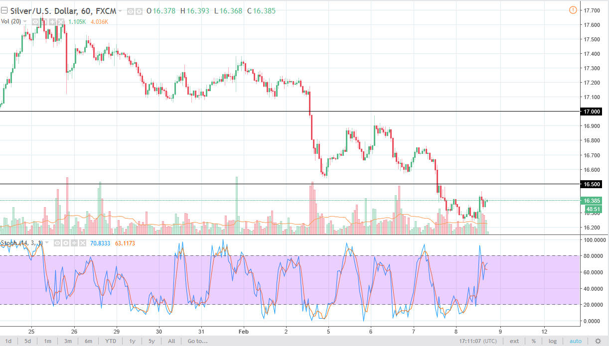 The US dollar has rolled over a little bit during the day, so we could see buyers to jump back into silver soon. I think there’s a lot of noise above though, so as per usual, I suspect that it is best to trade silver with physical silver, or at least very little in the way of leverage. The $17 level above will continue to offer massive resistance, so a break above there would be very bullish indeed. If we break down from here, I think the $16 level is even more supportive, and ultimately it is likely that we will find plenty of buyers in that area, if we even get down there. I do like silver from the longer-term standpoint, and I believe that the selloff has presented a nice buying opportunity for longer-term investors.