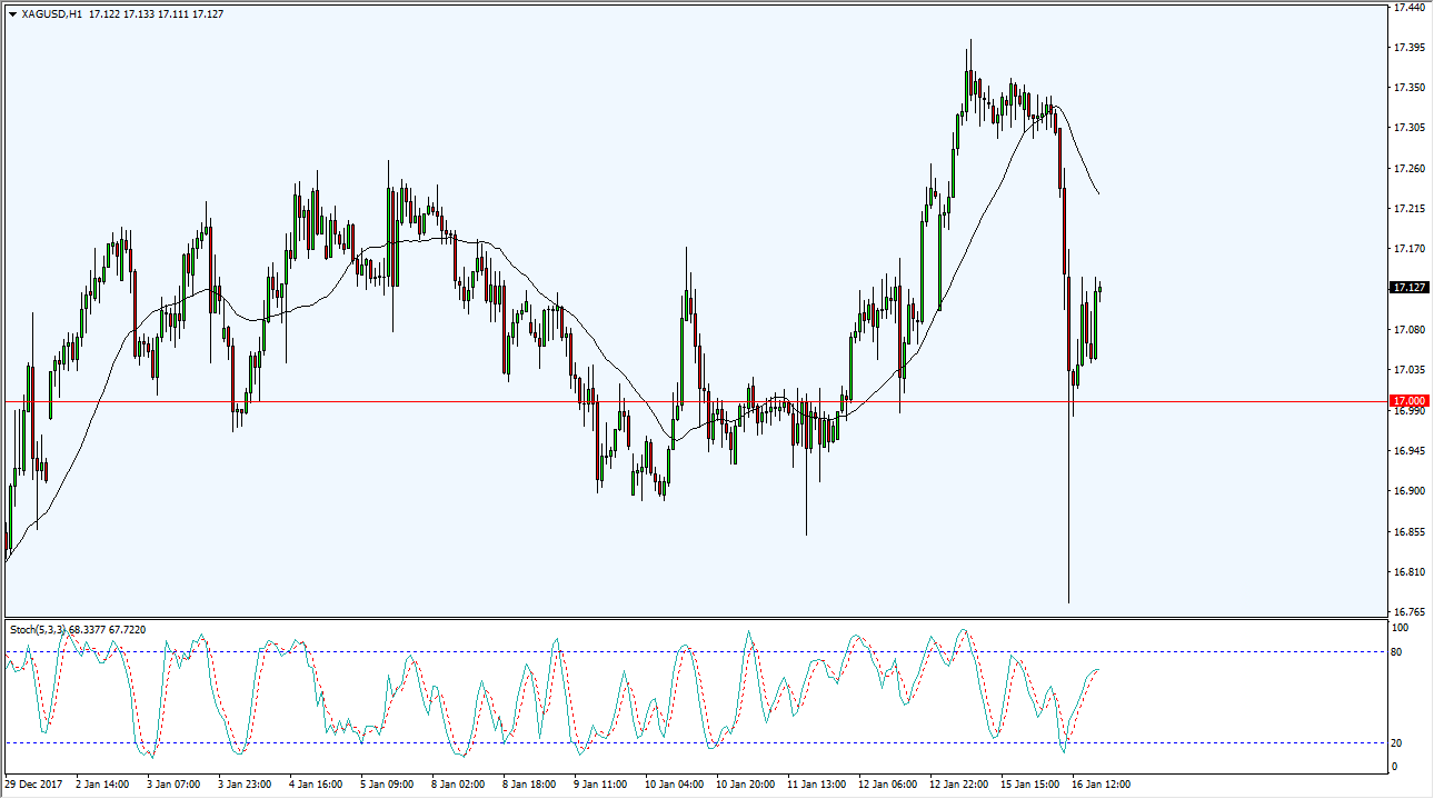 Silver markets fell apart during the trading session on Tuesday, as market participants came back from the Martin Luther King Jr. holiday. The market looks likely to respect the $17 level, considering that we had seen so much in the way of bullish pressure just underneath there.