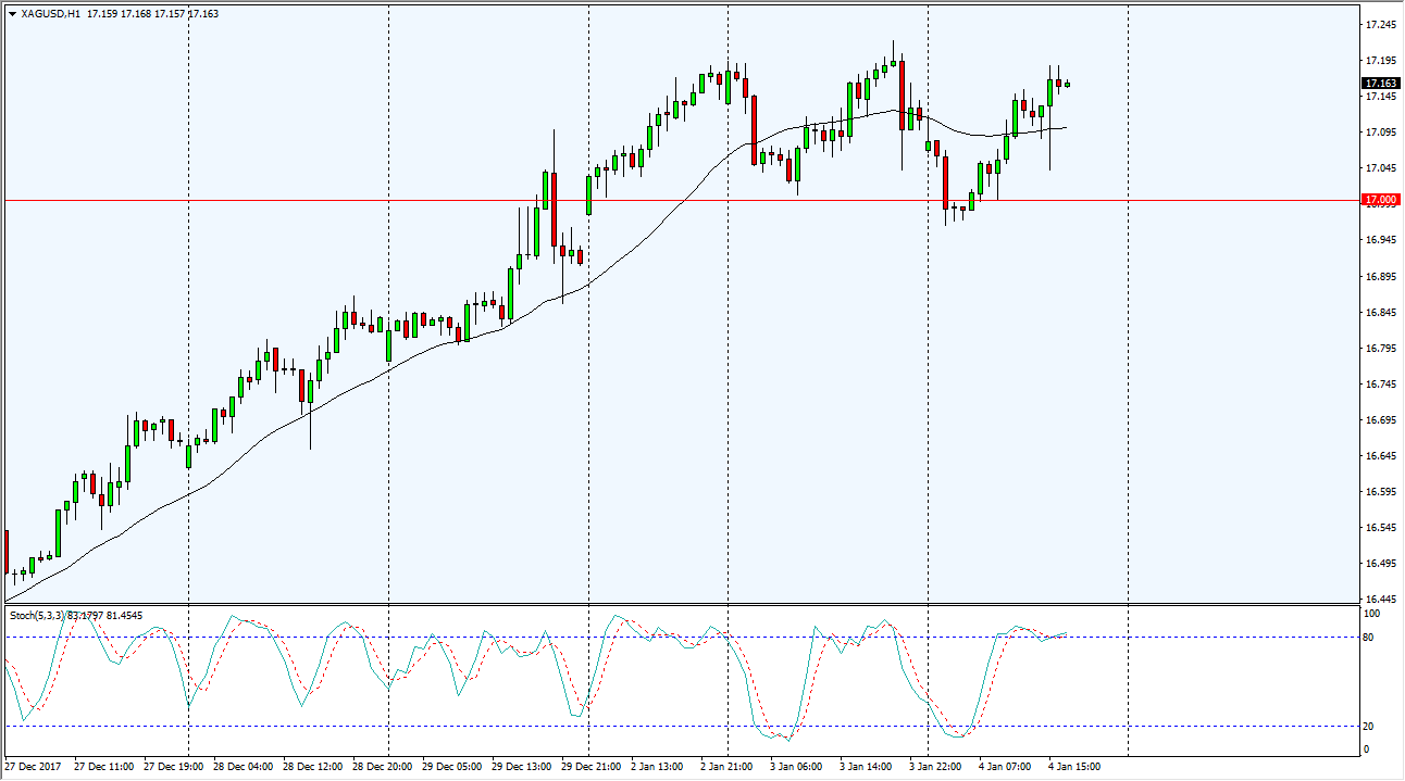 Silver markets initially fell during the trading session on Thursday, but found plenty of support at the $17 level. Because of this, the market bounced back towards the top of the overall consolidate a very that we have been in for the last couple of days, setting up for an interesting Nonfarm Payroll Friday.