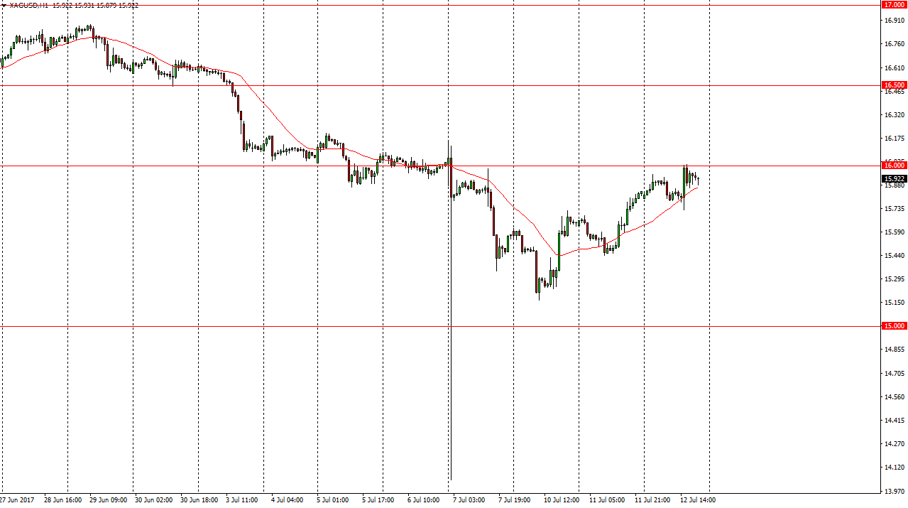 Silver markets chomped around quite a bit during the day on Wednesday, as we continue to meander just below the $16 level. As the market looks like it’s