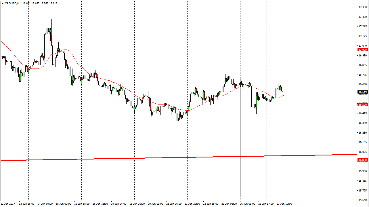 Silver markets were relatively flat during the Tuesday session as the $16.50 level continues to be supportive. I believe that the Silver markets are essentially flat for a reason, as the markets are relatively quiet. In general, a lot of volatility has been sucked out of the market as we are in summer trading. Because of this, I think that the market will probably continue to follow $16.50 as a supportive area, but quite frankly I don’t see any trigger for a larger move yet. I think that the market is essentially going to flatline, and therefore it becomes a market that is very difficult to trade. However, I do believe that longer-term we may have the ability to pick up Silver markets on the cheap, perhaps even adding physical silver in this general vicinity. I believe that the $16 level below is a massive support level, and if we can stay above there the only thing you can do is buy.