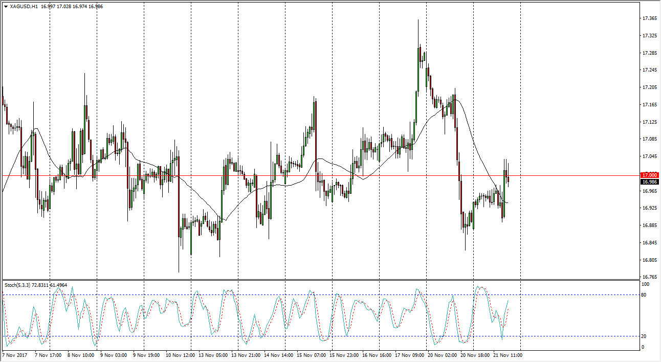 Overall, I think that the market will continue to tread water between now and the end of the year, unless there is some type of external influence, perhaps a geopolitical issue, or maybe the Federal Reserve being a bit more hawkish than initially anticipated. I think that Silver is probably very choppy and difficult to deal with, but if you have the ability to trade short-term charts, this might be a nice way to put money to work over the next several weeks. After New Year’s Day, we may see more volatility under the market, but I think right now it’s likely that Silver continues to be somewhat difficult to get a handle on for a longer-term move. Having said that, the Americans have just labeled North Korea as a terror supporting nation, so it’s possible there may be something coming out of that part of the world that gets people scared and running for precious metals. However, we have seen in the past that any search higher tends to be short-lived.