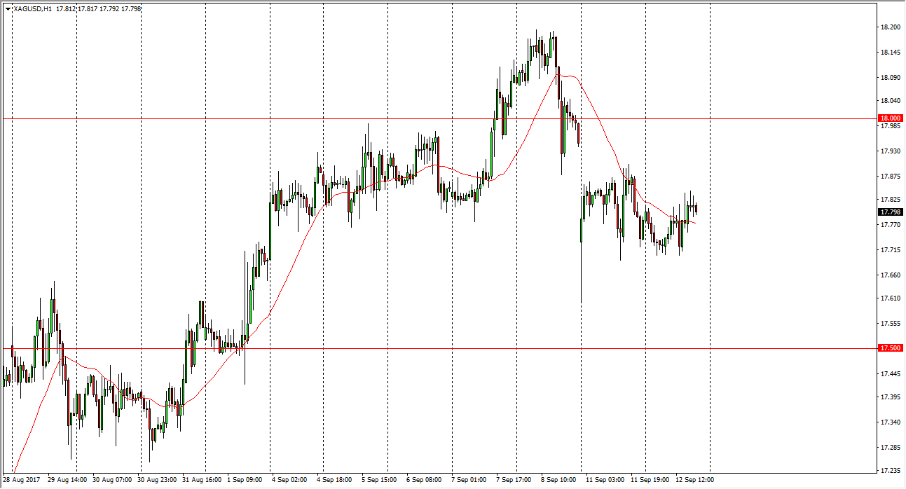 Silver markets continue to go sideways during the session on Tuesday, as the gap from the Monday opening remains resistive. Because of this, I believe that the market is going to continue to come under a bit of pressure, and I believe that given enough time we may see the market dropped down to the $17.50 level. Because of this, I’m not interested in buying this market until we can cross the gap, meaning clear the $18 handle. A lot of the “risk off” trade into precious metal seems to have abated, and silver of course has paid the price.