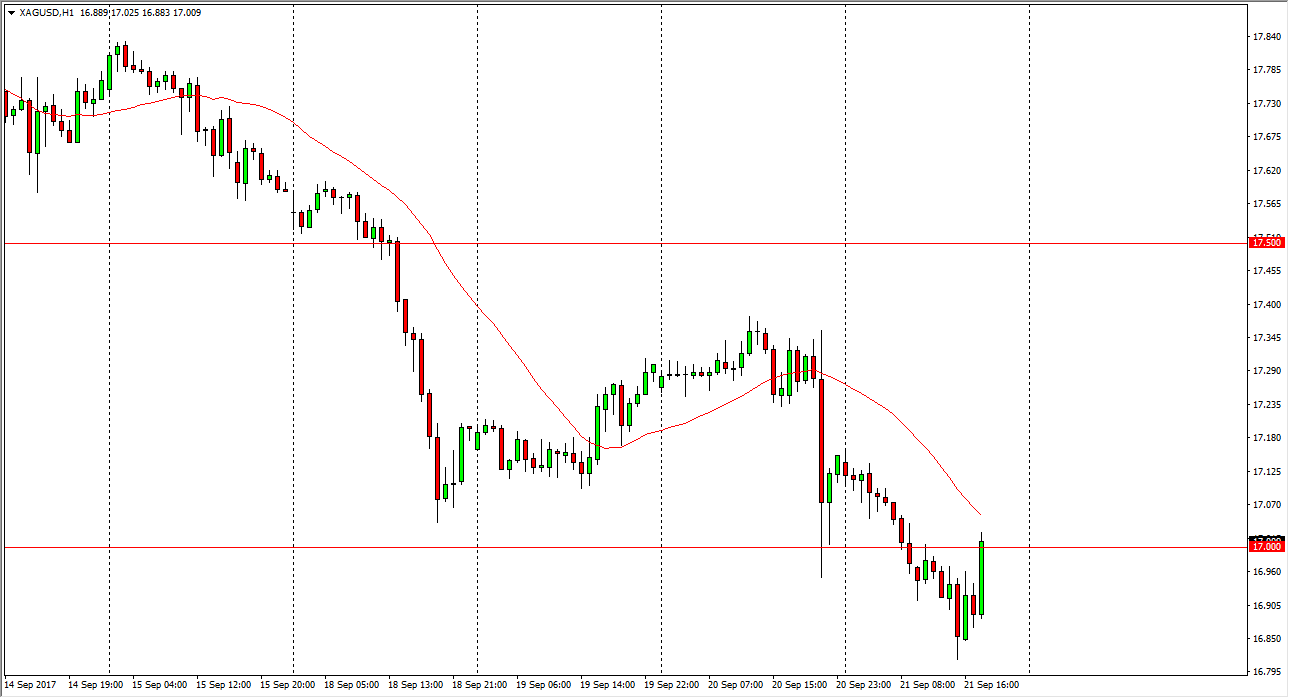 Silver markets fell again on Thursday, breaking below the $17 level. We have bounced since then but we are most decidedly in a downtrend over the last several sessions. I think there could be more bearish pressure above, and quite frankly I’m not interested in trying to fight the market right now. I think that the Silver markets are probably best avoided because of the lack of stability at times, and this certainly looks like the recipe for volatility. I think that the US dollar could continue to strengthen overall due to the Federal Reserve’s shrinking of the balance sheet, and that could continue to put bearish pressure on precious metals overall, with of course Silver being a little bit less liquid than gold, so it causes more volatility.