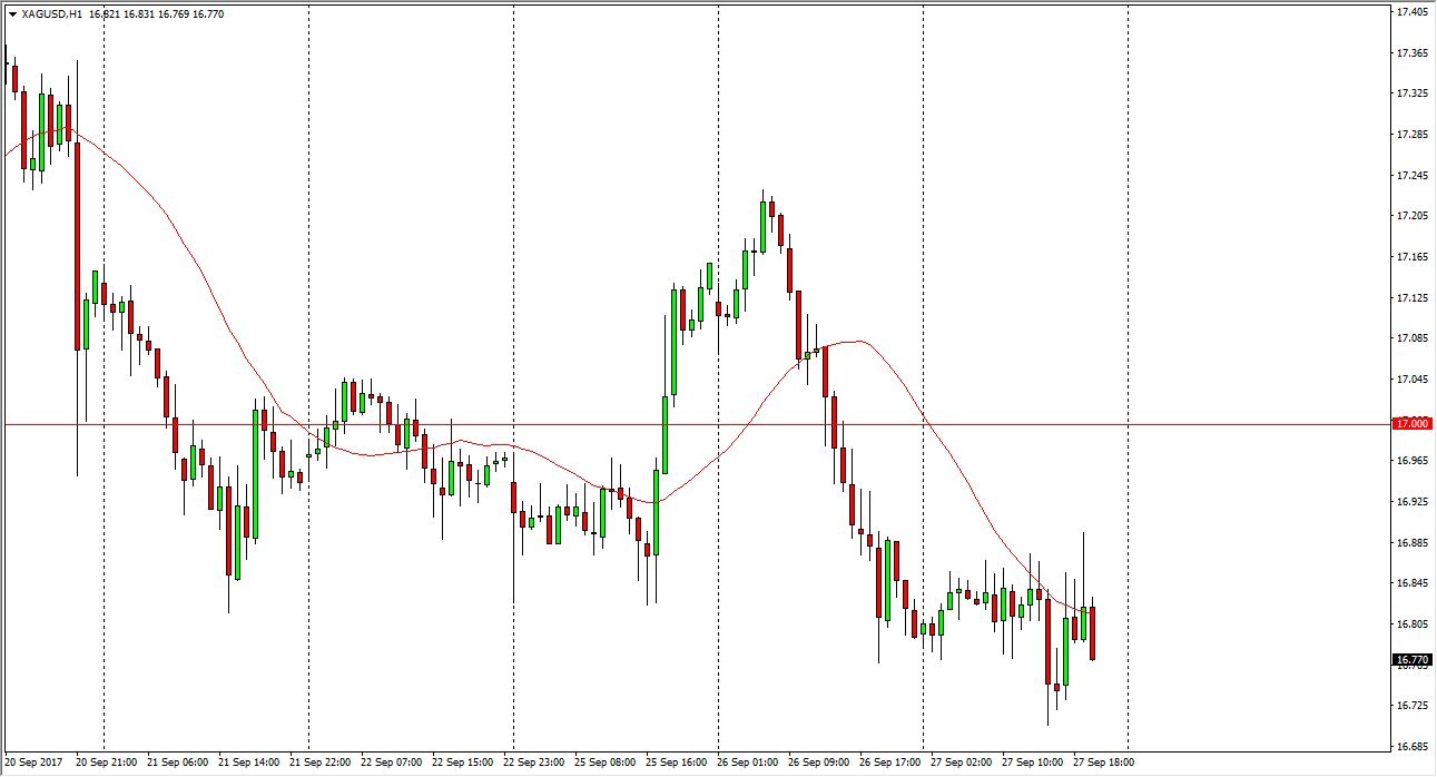 The Silver markets have really taken it on the chin over the last couple of days, and I think that the bearish pressure continues not only from Silver, but gold traders as the 2 tend to move in lockstep. The markets continue to be very jittery, and even though we could get headlines coming out of North Korea that has people buying precious metals, I believe that any of those rallies will be short lived. I don’t like hanging onto a trade for any real length of time, unless of course it is some type of longer-term buy-and-hold physical silver trade. I do not like buying leveraged positions, and believe that the market will be far too dangerous to have a lot of leverage on any position. Buying physical silver ounces would be a different story, because of course the lack of danger, and the ability to hang onto that Silver for years.