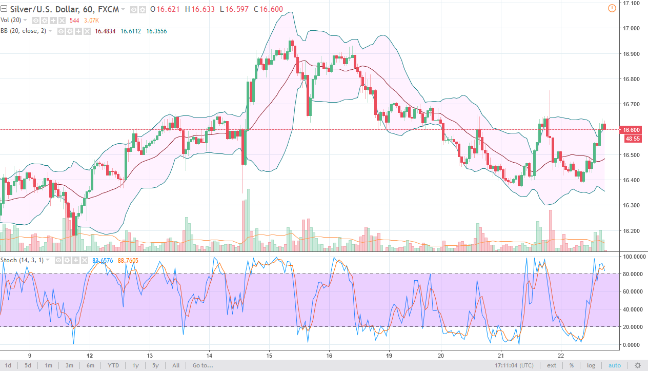 Silver markets went sideways initially during the trading session on Thursday, reaching down towards the $16.40 level. That area has offered enough support to cause market to bounce rather significantly, as the US dollar has fallen. I believe that the Silver markets are trying to find enough support to rally again, and I believe that the market is probably one that you can buy on dips. That could be wrong, this is a market that will have a lot of trouble, but longer-term I believe that the buyers will certainly come out on top.