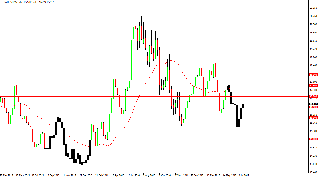Silver markets initially fell during the week, but turned around to form a rather bullish pressure and then reached above the $16.50 level. This is a