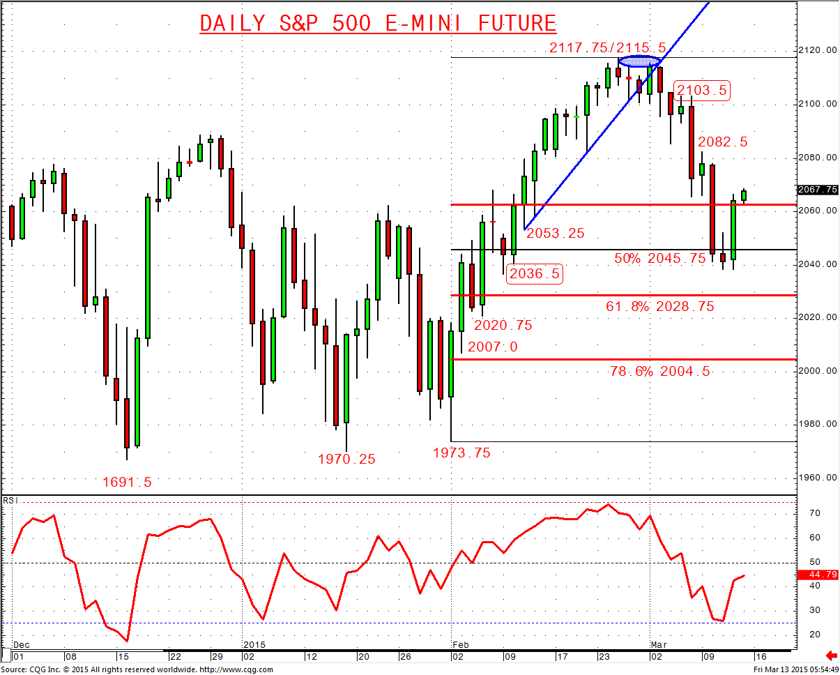 March contract The Tuesday plunge below 2053.25, negated bull extension risk for mid-March for a switch to a range theme, but the rebound from ahead of