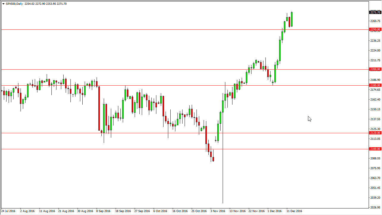 The S&P 500 rallied during the day is all US indices did, showing the 2250 level to be supportive. It looks as if we are going to continue to go much higher, and pullbacks should continue to offer value. I believe that pullbacks will be opportunities to go long again and again, as we reach towards the 2300 handle, and perhaps even higher than that given enough time. I certainly would have no interest in selling this market right now, as it has been so strong over the last several weeks and months.
