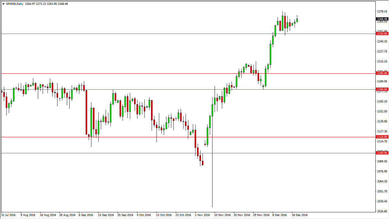 The S&P 500 tried to rally during the day on Tuesday, but found the market to be a little bit resistive. A pullback from here should be a buying opportunity, but we could be very volatile for the next several sessions as we are getting close to the holiday season. The 2250 level below is massively supportive, so I think given enough time we will find buyers time and time again, but we may not be willing to break out before New Year’s Day, as a lot of traders would be hard-pressed to put on a lot of risk currently.