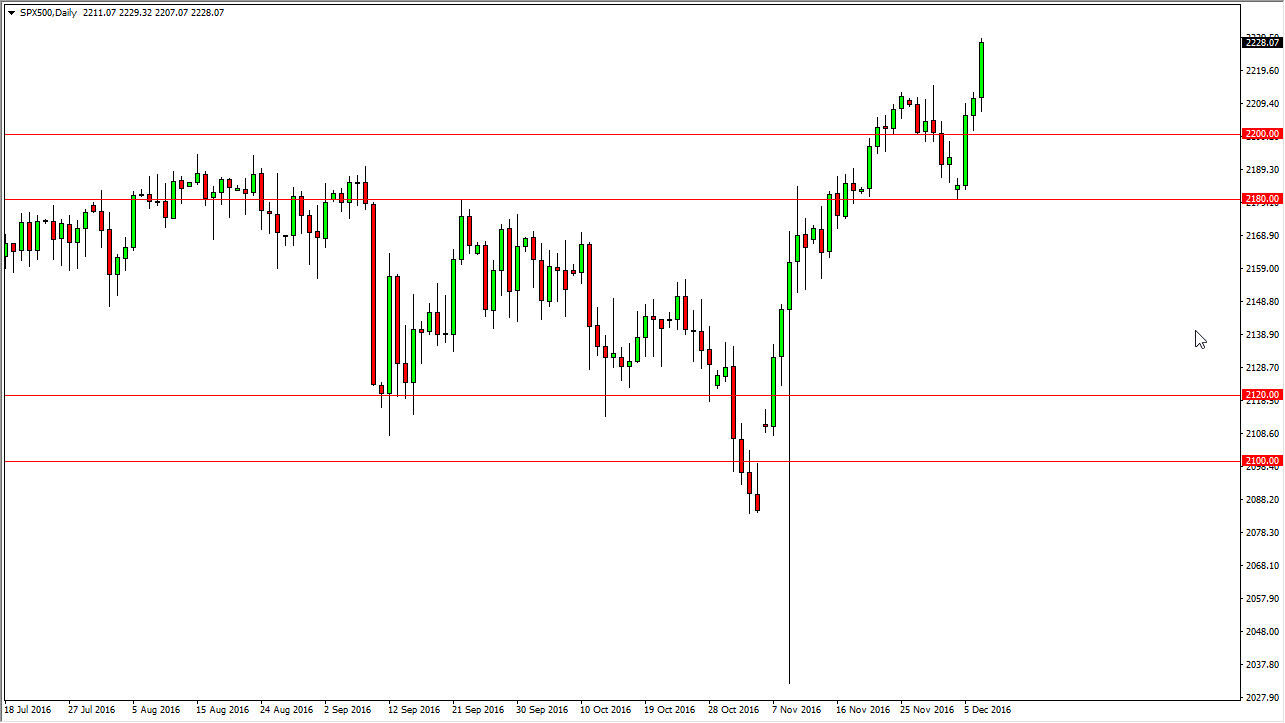 The S&P 500 broke out during the day on Wednesday, as we have now broken above the 2225 level. This is an area that is very bullish, and it appears