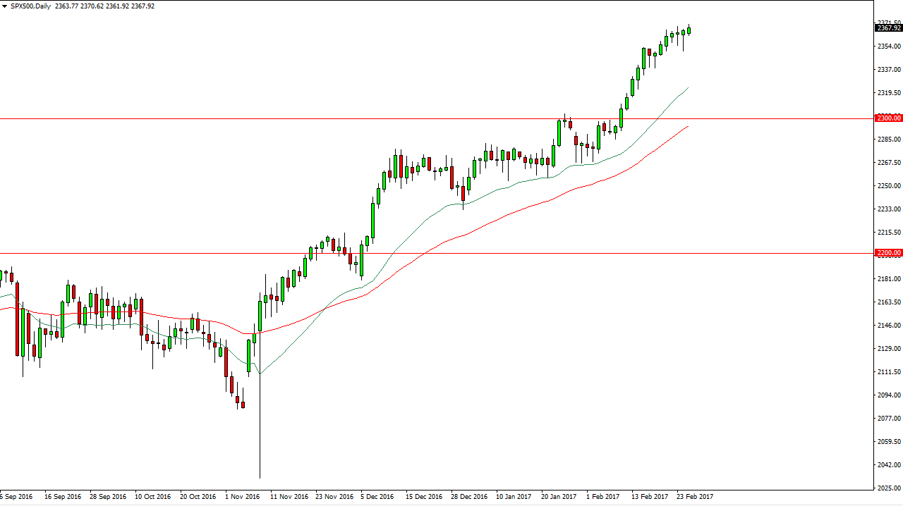 The S&P 500 rallied a bit during the day on Monday as we continue to see bullish pressure in the US stock markets. Given enough time, market should pull back and be buying opportunities, and I believe that the longer-term uptrend should continue to go much higher. The 2300 level underneath is the absolute floor” in this market. Although this has been a very bullish market, we are little overextended so don’t be surprised if we slowdown as far as momentum is concerned. We could even get pullbacks, but those should only offer value.