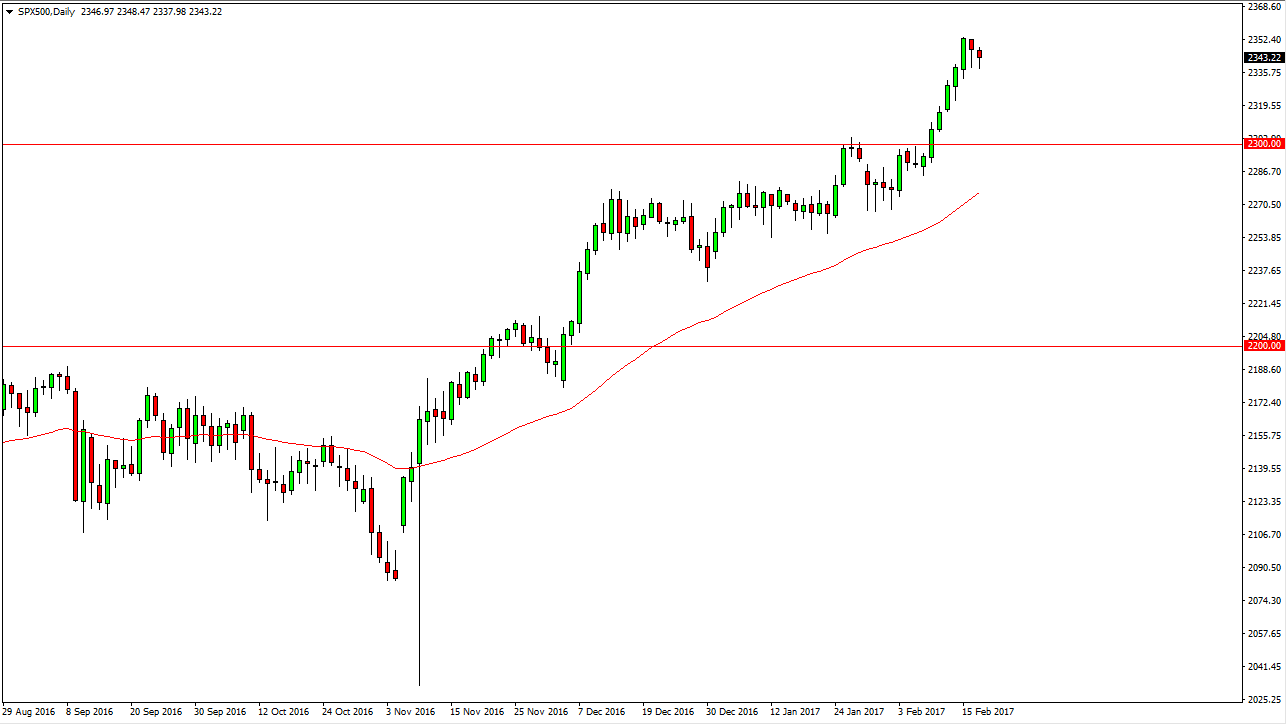 The S&P 500 fell a bit during the day on Friday, but continues to find support near the 2340 handle. I think that every time we pull back value investors will get involved, and that the absolute “floor” in the market is the 2300 handle. Given enough time, I think we continue to go towards the 2500 level. This is a market that is extraordinarily bullish, so I think that it’s only a matter of time before the buyers get involved. Selling isn’t even a thought currently, as the US indices overall look very strong.