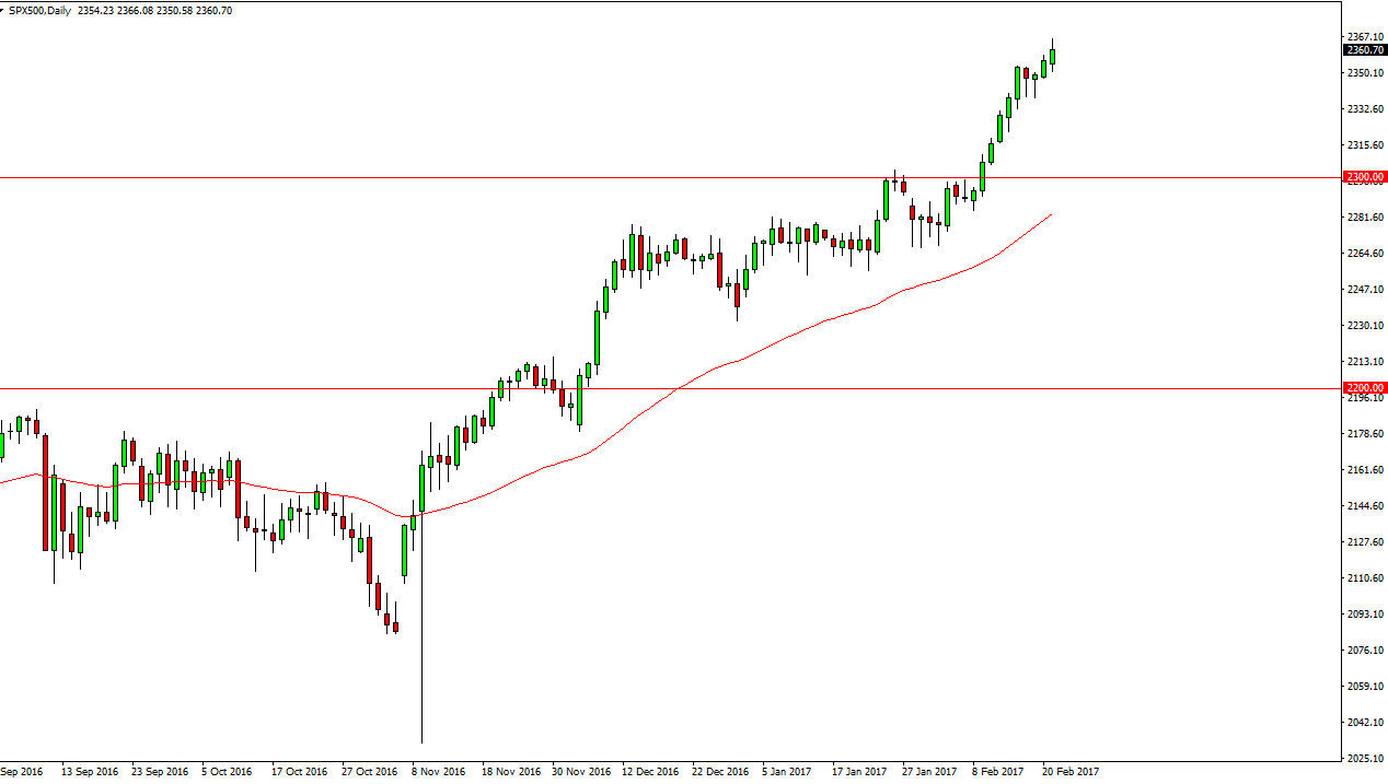 The S&P 500 had a positive session on Tuesday, as traders came back from the Presidents’ Day holiday. The rest of the world has been bullish, so it makes sense that New York played a little bit of catchup. I believe that this market will find buyers every time it pulled back, because quite frankly this is one of the strongest markets I follow. I believe that the 2350 level is soft support, but I believe that the absolute “floor” is at the 7300 level. American indices should continue to lead the rest of the world.